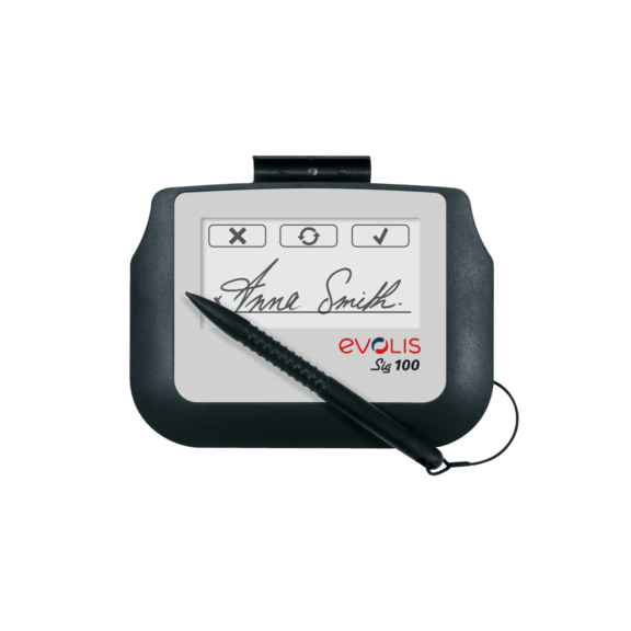 Model is a tablet with a large signing surface. Its color screen is ideal for optimizing the signing process at a counter or in an office.